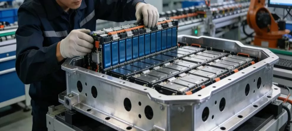 Sectorul transport: Primul plan al ansamblului cadrului pachetului de baterii pentru vehicule cu energie nouă